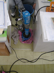 ←ダイヤモンドコアドリルによる床面開口作業 |