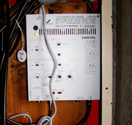 受信したテレビ電波を各戸へ送るときに必要なブースター及び分配器もアナログ放送、デジタル放送両対応のものに交換。各戸への電波受信状況改善のため分岐アンテナ線も交換を実施しました。