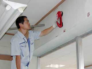 梁部分の開口にあたり、センサーによる鉄筋位置の調査を実施。これにより、鉄筋の破断を極力避け、躯体の強度低下を防ぎます。 |